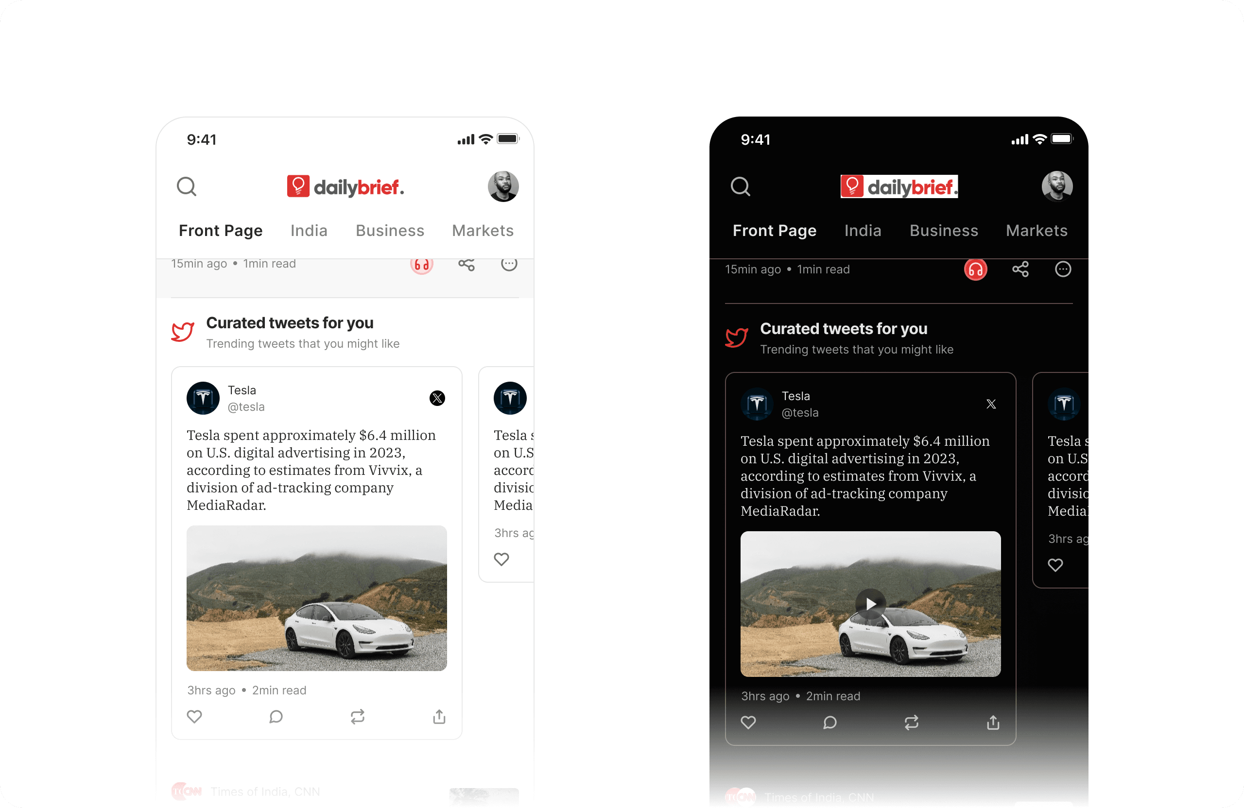 To add context and depth, I integrated curated tweets within relevant categories so users could see social signals without leaving the app.
